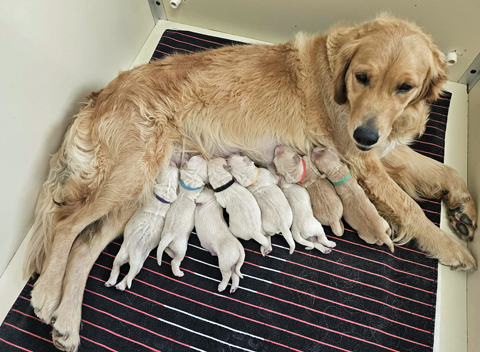 2023 Notre prochaine portée est attendue pour début juillet. Notre chienne Tina du Rostère a rencontré le mâle Dolce Gabbana Golden Robos (Barclay). Les chiots seront prêts à découvrir leur nouveau lieu de vie vers la première quinzaine de septembre