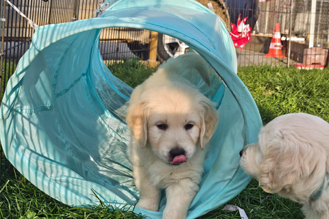 entre les averses, les chiots s’amusent et découvrent plein de nouvelles choses